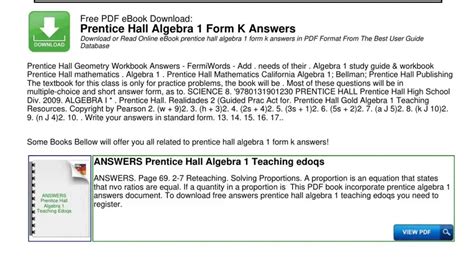Download prentice hall foundations algebra 1 form mobipocket